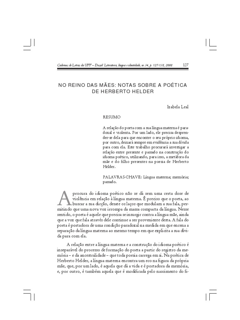 Pdf A Lírica Maquinal De Herberto Helder Hipertexto E