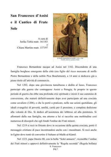 Il Cantico Delle Creature Di San Francesco La Bottega Del