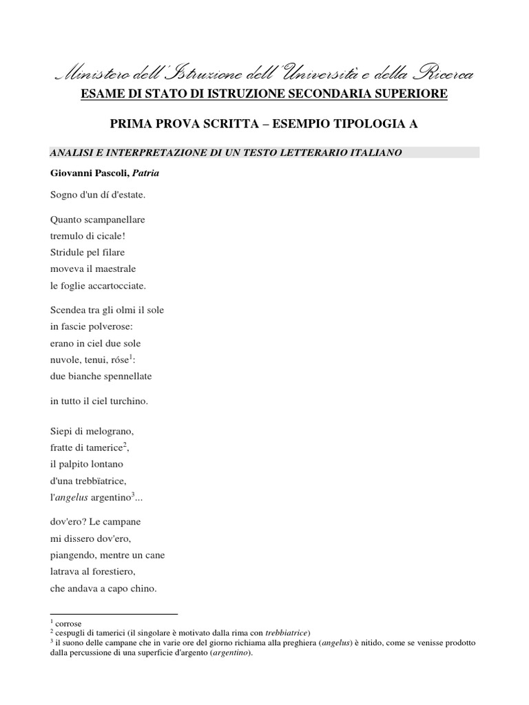 Patria Di Pascoli Soluzione Analisi Del Testo Svolta