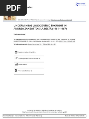Undermining Logocentric Thought In Andrea Zanzotto S La Belt