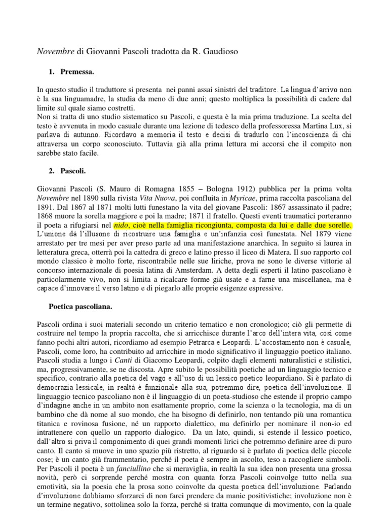 Novembre Giovanni Pascoli Fito